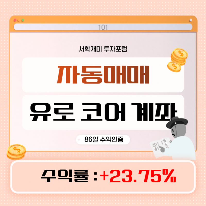 자동매매 86일차 유로 코어 수익인증: EURUSD를 통한 안정적 전략