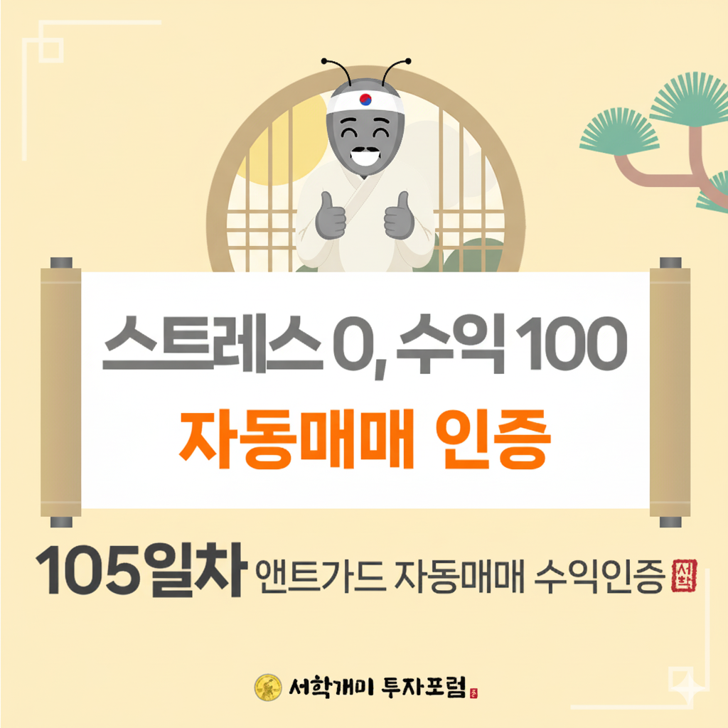 자동매매 105일차 앤트가드 수익인증: 스트레스는 0, 수익은 100 자동매매 인증