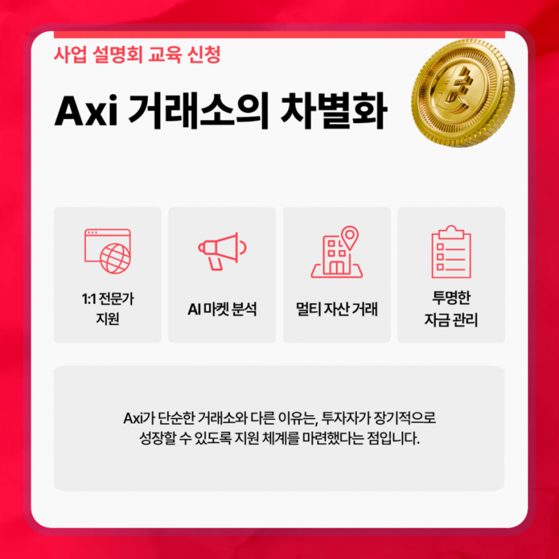 Axi 거래소는 1:1 전문가 지원과 무료 AI 마켓 분석뿐 아니라,
