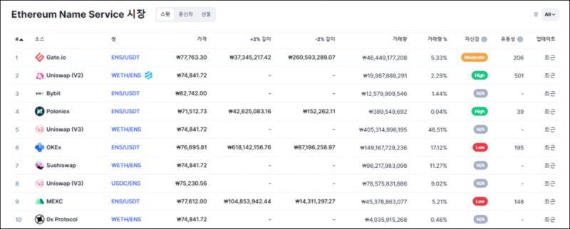 이더리움 네임 서비스(Ethereum Name Service, ENS) 상장 거래소