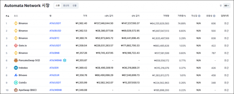 https://coinmarketcap.com/ko/currencies/automata-network/markets/