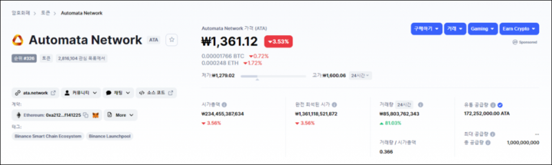 오토마타 네트워크(Automata Network, ATA) 상장 거래소