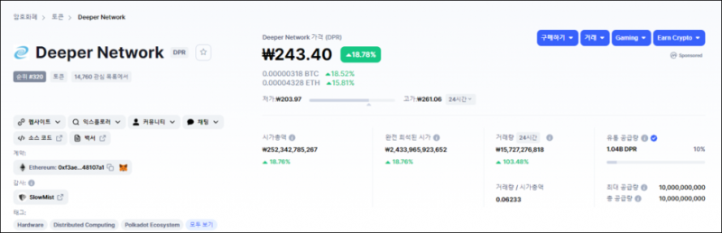 디퍼 네트워크(Deeper Network, DPR) 상장 거래소