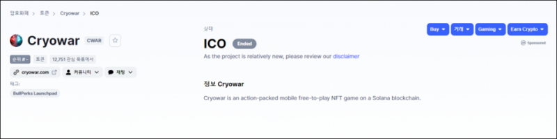 https://coinmarketcap.com/ko/currencies/cryowar/ico/