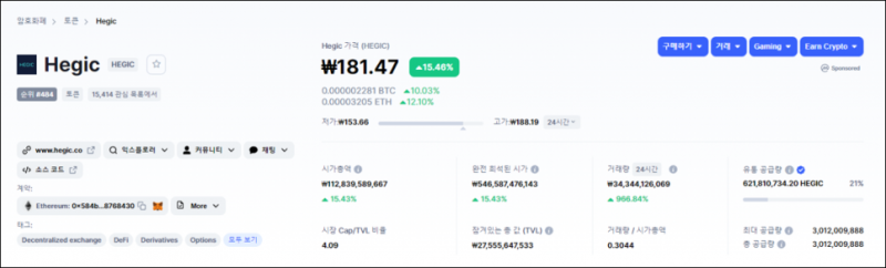 헤직(HEGIC) 상장 거래소