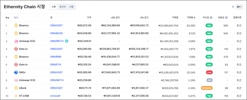 이더니티 체인(Ethernity Cahin, ERN) 상장 거래소