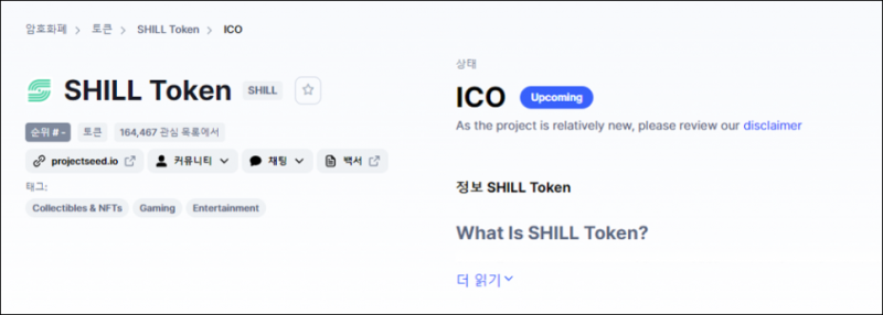 ▼ 프로젝트시드(Project SEED, SHILL) 코인마켓캡 실시간 시세 확인하기
