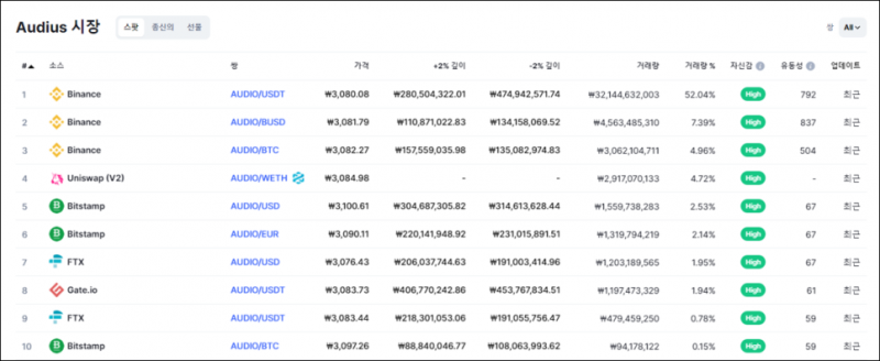 오디우스(Audius, AUDIO) 상장 거래소