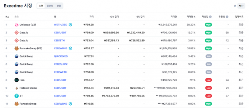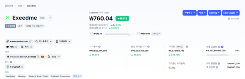 ▼ 엑시드미(Exeedme, XED) 코인마켓캡 실시간 시세 확인하기