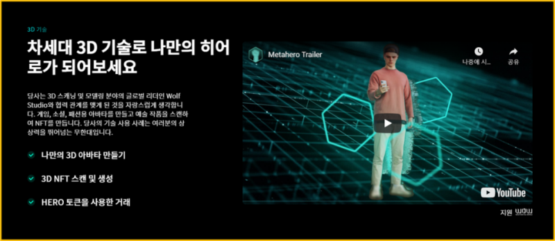 메타히어로가 게임, VR, 소셜미디어, 온라인 패션 전반에 걸쳐 사용할 가상 아이템과 초현실적인 3D 아바타를 생성하는 3D 스캐닝·모델링 기술을 시장에 선보입니다. 이 기술은 또한 실제 예술 작품과 수집품에서 NFT를 만들 수 있도록 합니다.