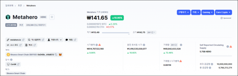 메타히어로(Metahero, HERO)가 한국 시간으로