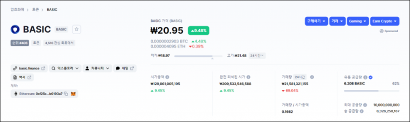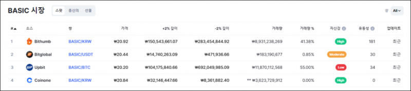 ▼ 베이직(BASIC) 코인마켓캡 실시간 시세 확인하기