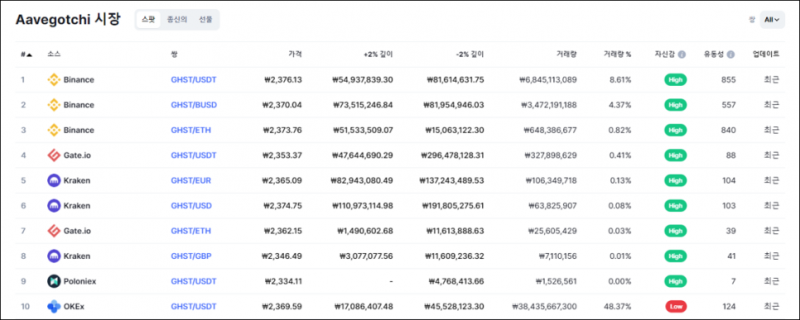 아베고치(Aavegotchi, GHST) 상장 거래소