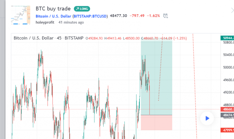 내 마지막 거래(Linked)에서도 뒤를 쫓아가서 48,600의 더 좋은 가격에 재입장합니다. 포물선을 계속 찾고 있어 이걸 설정하기 위한 멋진 휙휙 하는 액션 같아. 포물선을 높은 곳으로, 그리고 말단 높이로, 그게 내가 예상하는 거야.