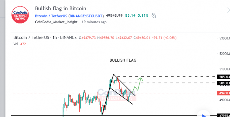 * 1H 시간대의 비트코인은 Bullish 플래그 패턴을 형성합니다.