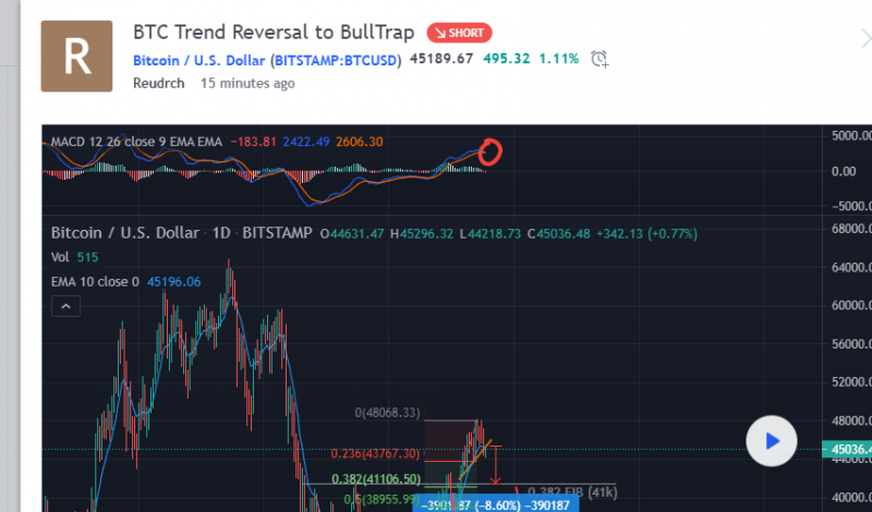 Multiple confirmations shows that we are in a trend reversal. BTC Bull trap is playing out well. We might also see BTC drop to 30k below before 2021 ends. DYOR