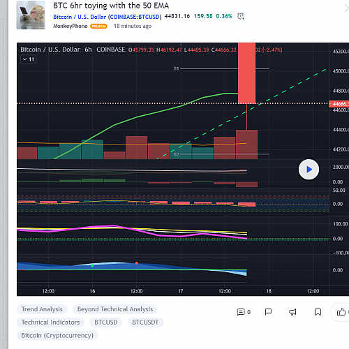 [코인] BTC 6시간 동안 EMA 50개시 / BTC 6hr toying with the 50 EMA