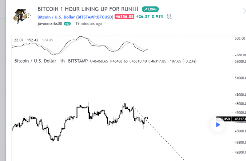 BITSTAMP:BTCUSD Bitcoin's 1hr chart has just recently broken above a short term resisting trend line . Being above this trend line technically implies that there is no actual resistance for Bitcoin until 47724. 05 . RSI is holding a very evident bullish divergence which is a major indication for strength to come. MACD has also recently given a bullish crossover, which can be perceived as another bullish sign! We can only connect the dots looking backward and trust that they will connect in the future, and in this case, charts, and indicators are all lined up for bullishness, so the question is, will they connect in the future?