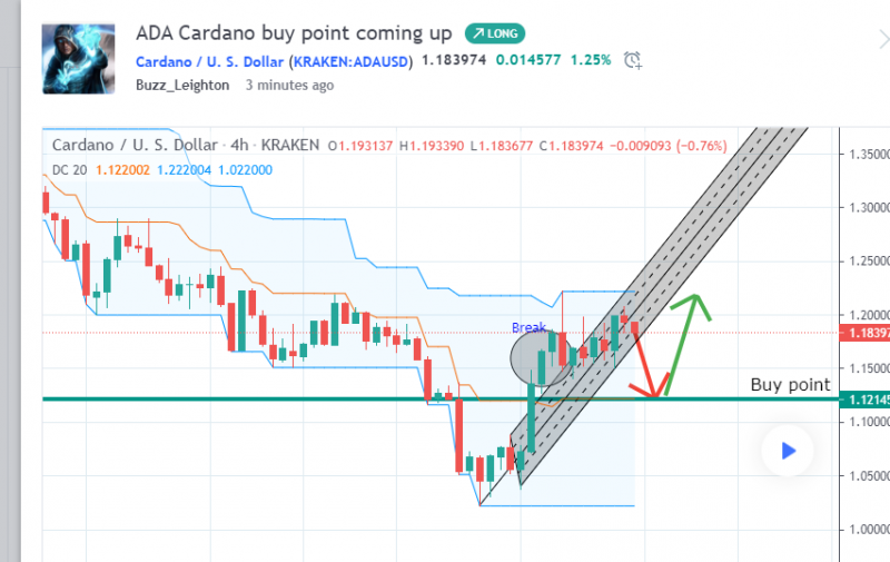 Ada cardano is currently at a rejection zone after a previous break from pitchfork . We can expect a drop down to the green line where I recommend a long position. The price will bounce from here. Stochastic is also ready to drop.