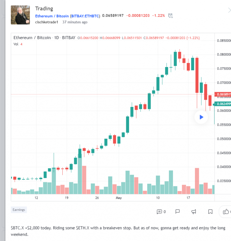 $BTC.X +$2,000 today. Riding some $ETH.X with a breakeven stop. But as of now, gonna get ready and enjoy the long weekend.