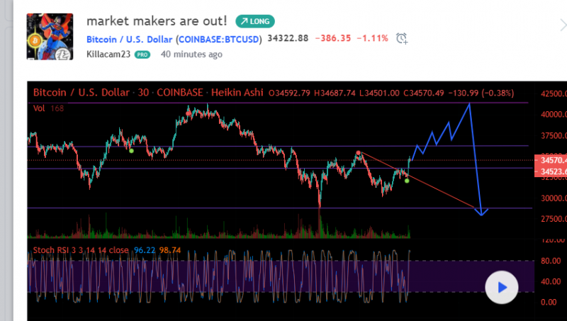 knew this was going to happen , I posted my reasoning in my chart from earlier. We were all expecting another dip...shorting..etc. ITS WHEN YOU LEAST EXPECT IT, BTC WILL COME DOWN TO retest 19-25k just isn't happening this week ... or next week.. maybe not even this month.