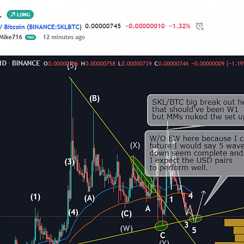 SKL / BitcoinBig_Mike716Daily TF EW analysis SKL / BTC . looks bottom …
