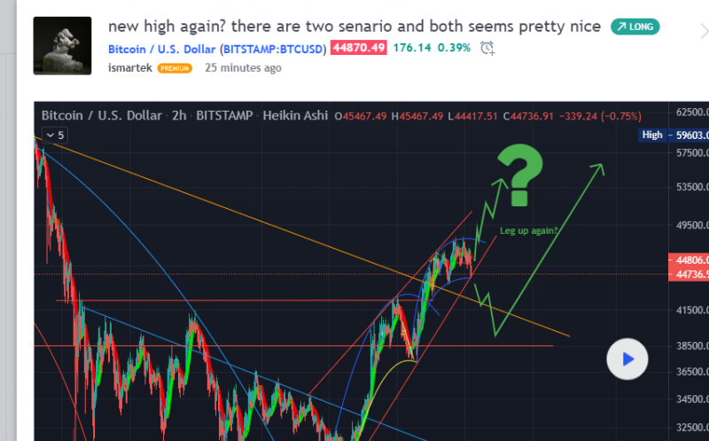 new high again? there are two senario and both seems pretty nice. it may drop to 38k-38.5k but it will go up huge this time! better to be long in btc from now.
