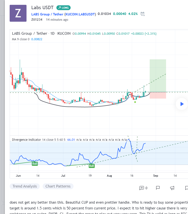 does not get any better than this. Beautiful CUP and even prettier handle. Who is ready to buy some properties. Break out target is around 1.5 cents which is 50 percent from current price. I expect it to hit higher cause there is very little resistance on up swing. DYOR. GL. Expect the move to play out very very soon. This TA is valid as long as BTC does not dump.