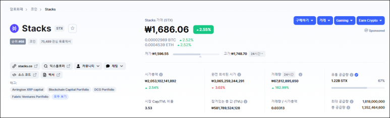 오늘 알아보실 코인은 스택스 코인(STX)입니다.