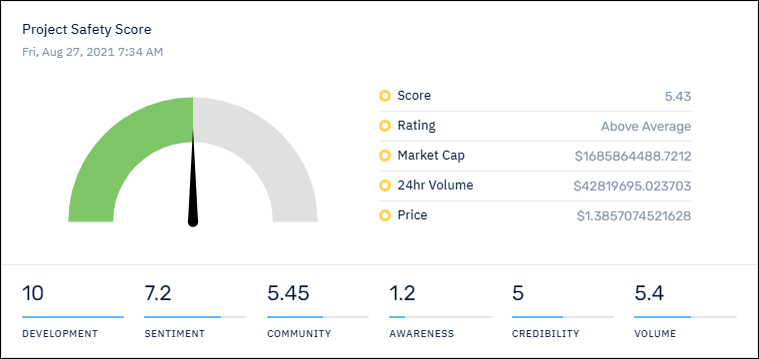 8월 27일 금요일 오전 기준 스택스 코인의 스캠 스코어 점수는 5.43으로 평균 이상을 기록하고 있습니다.