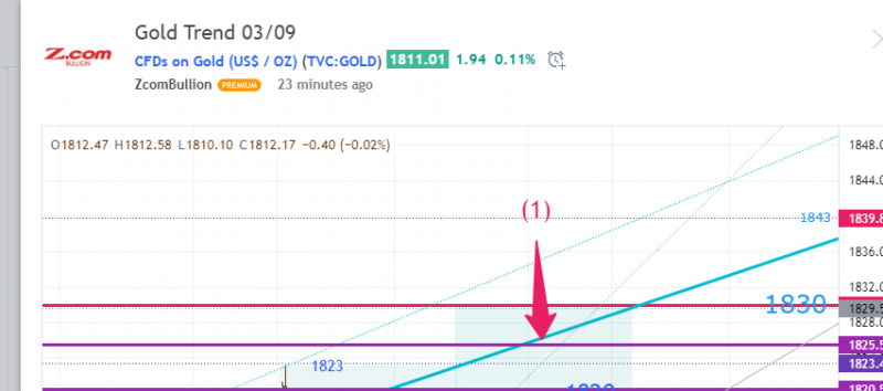 Gold remained in a tight range again yesterday. The price has traded within 1810-16 throughout the day, and the same pattern occurred as the price went below 1810 during the US session again. The day ended near 1809, down by USD4. Before the US release its employment figures today, the gold price should continue to stay between 1810-16(2). Trend lines (1) are still in effect.