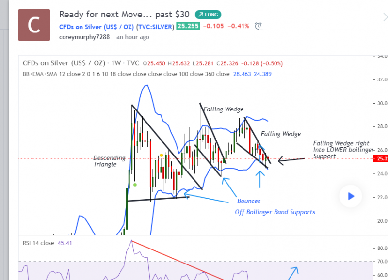 We all seen the ascending wedge that Silver has created over the last year. This chart just gives extra validation to the trade idea with several other sub-indicators, that eventually we are going to break up from here and re-challenge $30 in next few months.