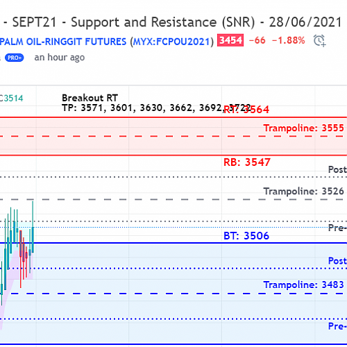 [선물] FCPO - SEPT21 - SNR(지원 및 저항) - 28/06/2021 / FCPO - SEPT21 - Support and Resistance (SNR) - 28/0…