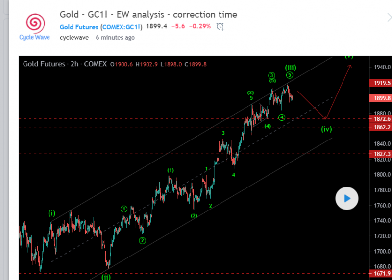 GOLD - It seems like the 3rd wave of the impulse cycle completed at the last top and now it is correcting down in 4th wave, which may take 8- 12 days and probably correct down up to 1865 or even lower level before it resume the next sequence higher.