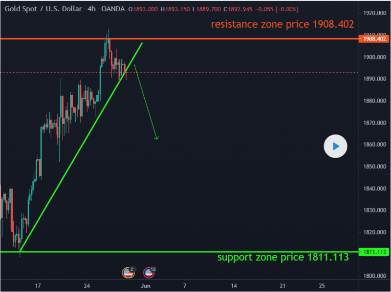 price is selling from a resistance zone price 1908.402 and selling towards the support zone price 1811.113
