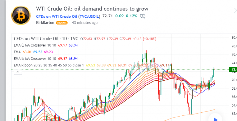 국제에너지기구(IEA)의 호재가 나오면서 북미산 경유 WTI 원유 가격이 72.46에 거래되고 있다.