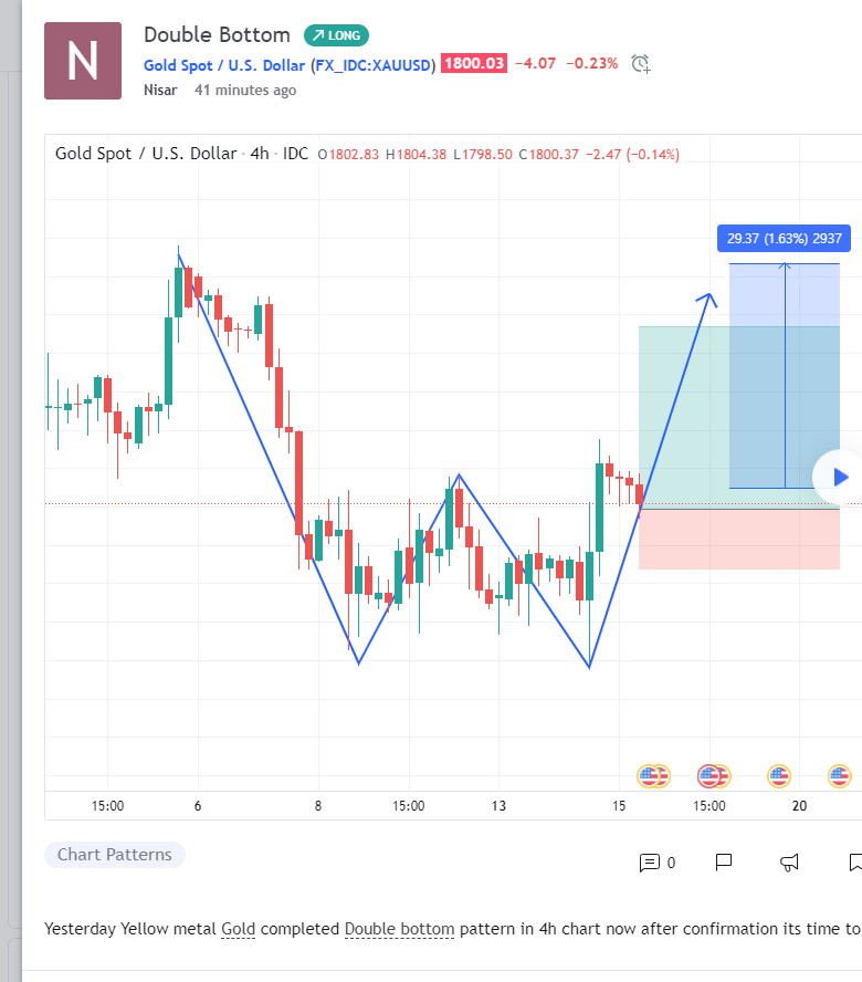 Yesterday Yellow metal Gold completed Double bottom pattern in 4h chart now after confirmation its time to go Long