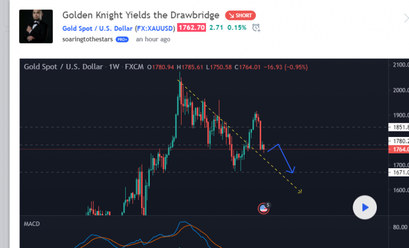 DXY의 상승세가 당초 전망대로 94레벨에 육박하고 파월 장관의 재정정책에 대한 비둘기파적인 발표로 인해 이 안전한 성은 3주 안에 무너질 것으로 보인다. 금은 튼튼한 구조용 해자를 부수고, 현재 2020년 1월부터 건설된 주간 하강 통로로 나선형이다. 1770년 월계수 구조의 교차점 아래로 추락한 것과 이 하강 채널은 문에서 곰을 강하게 하는 것을 나타낸다.