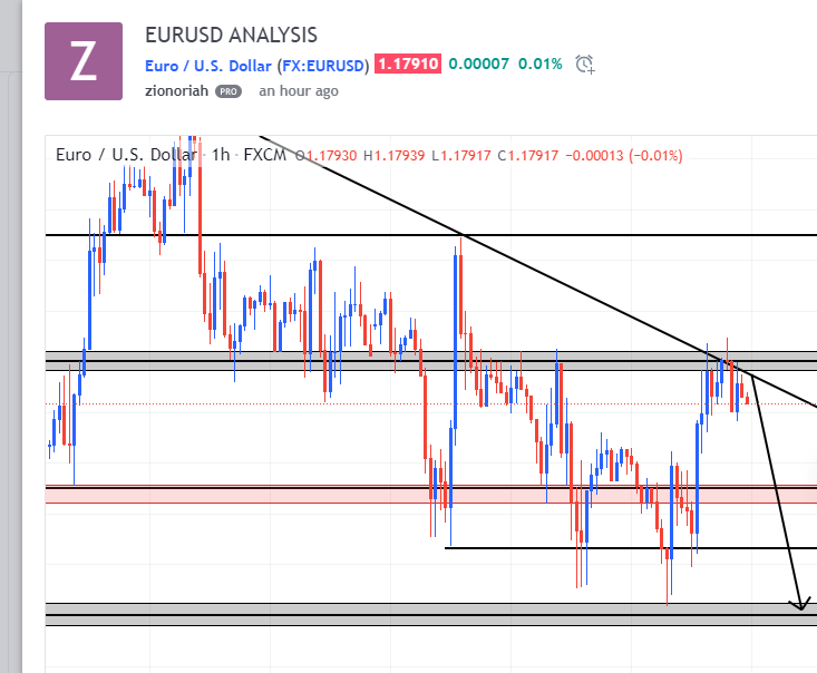 Now i see EU approaching the 1.18000 pyschological  level and the confirmations i saw were, when price got to the trendline{descending trendline} price wicked around that area and then gave a  bearish candlestick  formation and i saw some  bearish  momentum then i knew i was to short EU.But if it should go the opposite direction then that is a different analysis altogther.