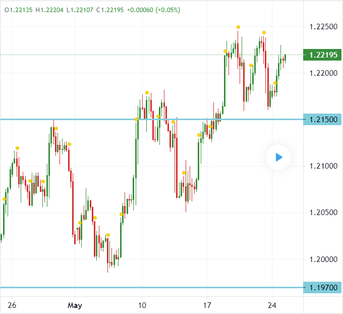 Overall, EUR/USD is trending upwards. Recently, EUR/USD broke above the key level of 1.22.