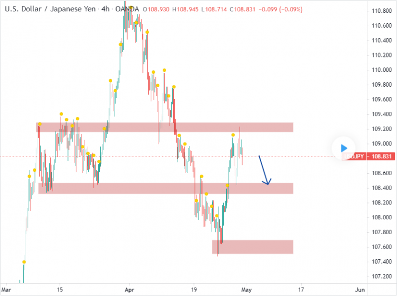 In today's trading session, I will be focusing on the short-term selling opportunities on UJ. As price has previously rejected the 109.20 resistance zone , I am anticipating further selloff on UJ towards the 108.45 support zone .