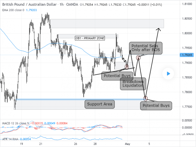 Prices got rejected from a resistance zone , looking to test a BUY zone @1.79000 area. Aggressive and short term traders may look at this as a potential buy trading opportunity.