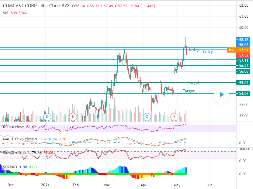 CMCSA formed a double top and it started to reverse, looking at the 4H for potential entry and targets.