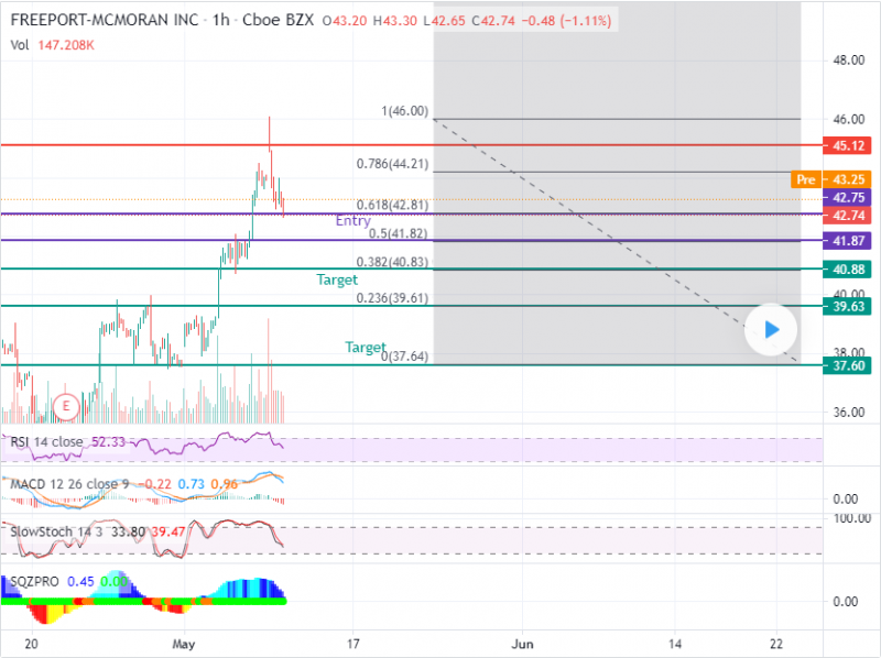 42.81과 41.82 이하의 짧은 FCX를 예상하며, 1 H에 주어진 목표를 가지고 있다.