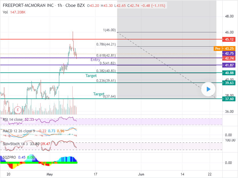 looking to short FCX below 42.81 and 41.82 with given targets on 1 H.
