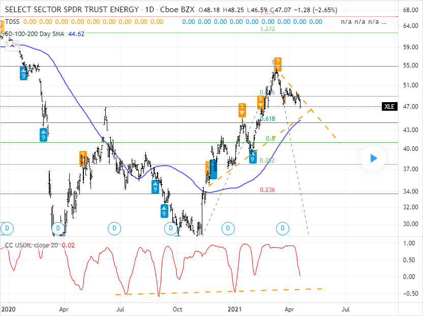 [해외주식] XLE는 강력한 쿠키입니다. 베어리쉬 추세와 WTI에 대한 부정적인 영향입니다. / XLE is a tough cookie - bearish trend & negative corr. to WTI
