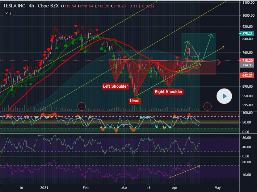 머리와 어깨 패턴에서 이 이전 브레이크가 튕겨져나오길 바라네 이번 주에 700달러 이상 마감하는 한, 월요일 실적은 테슬라를 800달러 이상으로 회복시켜 줄 것으로 생각합니다.