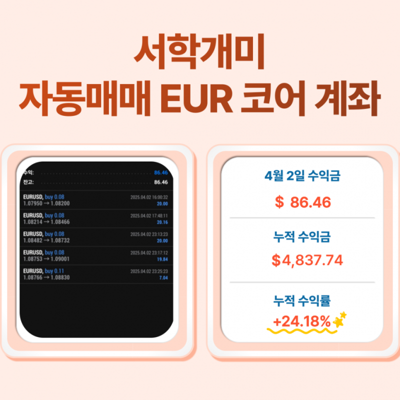 자동매매 87일차 유로 코어 수익인증: 유로달러 통화쌍 매매