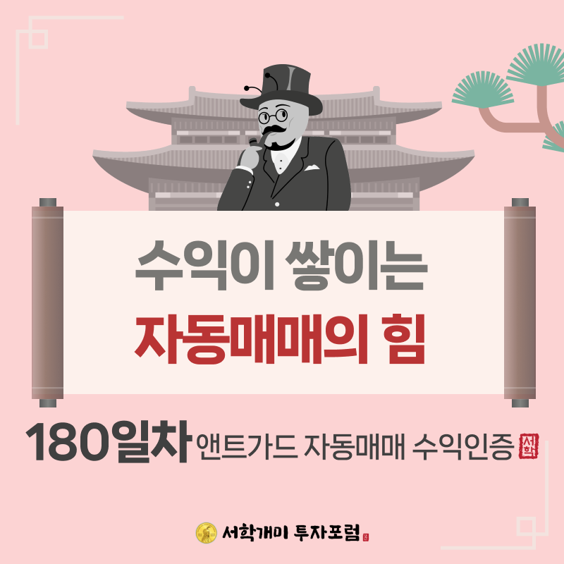 자동매매 180일차 앤트가드 수익인증: 수익이 쌓이는 자동매매의 힘 코인개미 0 55 2025.12.01 11:26 🐜 AntGuard 소액으로 시작하는 자동매매 루틴 미 자동매매 프로그램 'AntGuard' 는안정적인 자동매매 시스템을 통해, 세가지 전략(공격,일반,안전) 모두 꾸준히 수익을 내고 있어요! 앤트가드 모드, 이런분들에게 추천드려요!공격, 일반, 안전 세가지 모드를 성향에 맞게 선택 하실 수 있습니다! 투자 모드자동매매 투자 성향예상 낙폭 (MDD)월 수익 목표😄 안전모드큰 변동성에도 수익률 낙폭이 크지 않은 안정형 투자 모드약 5%3~4%🤩 일반모드수익과 리스크의 균형을 이루고 있는 일반적인 투자 모드약 10$7~10%😎🚀 공격모드큰 변동성을 활용한 고수익을 추구하는 스릴 투자 모드15% 이상15% 이상안정적 투자 전략은 세가지 모드 중 가장 MDD가 낮은 모드입니다.자산의 안정성을 우선시한다면 후회 없을 선택입니다!일반 전략은 예상 수익과 낙폭 수치가 중간에 위치하고 있습니다. 중도적인 투자 전략을 지향한다면 고민없이 선택하세요!공격적 투자 전략은 세가지 모드 중 가장 큰 수익률을 기대하실 수 있어요물론 MDD 또한 높게 책정된다는 점 숙지하셔야 합니다..!AntGuard 자동매매에 대한 전반적인 내용은 하단 링크를 눌러 확인해 보시면 됩니다!👉AntGuard 자동매매 상세페이지 바로가기 *앤트가드 전략 계좌는 안정적인 자동매매 시스템을 통해 꾸준한 성과를 기록 중입니다.*12월 1일 수익금 : +$2.96누적 수익금: $486.96누적 수익률: +97.39%12 월 1일 수익금 : +$2.12누적 수익금: $343.28누적 수익률: +68.65%12월 1일 수익금 : +$1.84누적 수익금: $221.11누적 수익률: +44.22%📍 위 QR코드를 스캔하거나 👉 자동매매 상담(t.me/seohakantcom)을 클릭하여 맞춤형 서비스를 제공받으시고안전하고 수익성 높은 투자 경험을 시작해 보세요!서학개미 자동매매 신규가입자 혜택 안내현재 서학개미에서는 자동매매 신규 가입자를 대상으로 무료체험을 제공하고 있습니다!- 서학개미의 모든 자동매매 서비스를 이용할 수 있습니다.- 고객 계좌에서 100% 자동으로 거래가 수행되기 때문에 별도의 대응이 필요하지 않습니다.실시간 수익률 및 성과를 직접 확인해 보세요! Author 5 1 Lv.8 코인개미 최고관리자 63,120 (100%) 등록된 서명이 없습니다.