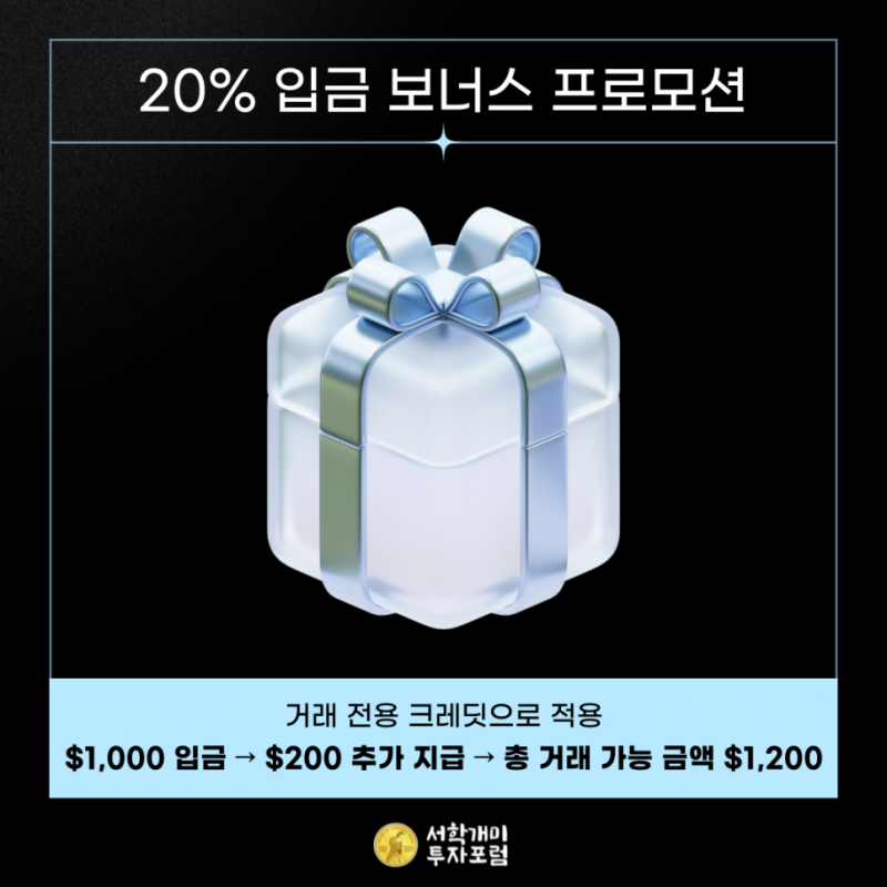 ✔️$1,000 입금 → $200 추가 지급 → 총 거래 가능 금액 $1,200